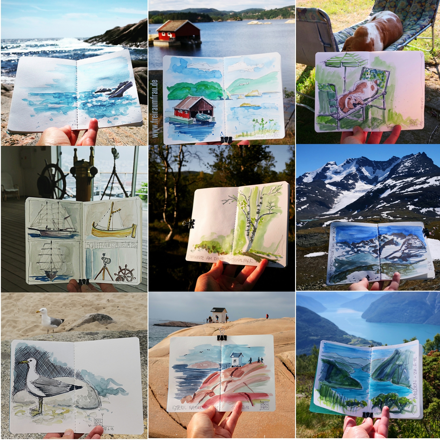 Das hat 2 Gründe. Zum einen ist die Challenge zu Ende und ich freue mich darauf ein bisschen Pause zu machen. Der andere Grund ist, dass ich seit Sonntag zurück in München bin. 54 Tage dieser #66skizzen war ich mit meinem Herzenmenschen im Freiraumbus auf Silberhochzeitsreise unterwegs. Ich hatte in Skandinavien täglich schöne Motive vor der Nase, die mich zum Zeichnen inspiriert haben. Im Münchner Alltag ist die Motivsuche etwas schwieriger.
