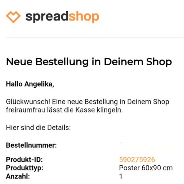 Das macht Freude. Ich checke meine E-Mails und eine Bestellung ist in meinem Spreadshirt-Shop eingegangen. Dort findest du Poster und Tassen mit meinen Zeichnungen.