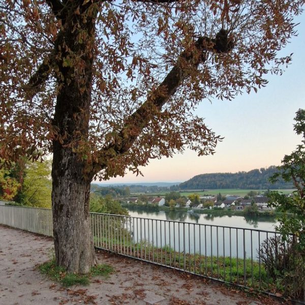 Toller Blick auf den Oberrhein. Auf der anderen Seite ist bereits die Schweiz. Huch, gleich mal prüfen, ob ich auch das Roaming ausgemacht habe. Versehentlich im Schweizer Netz surfen würde bei meinem Handyvertrag teuer.