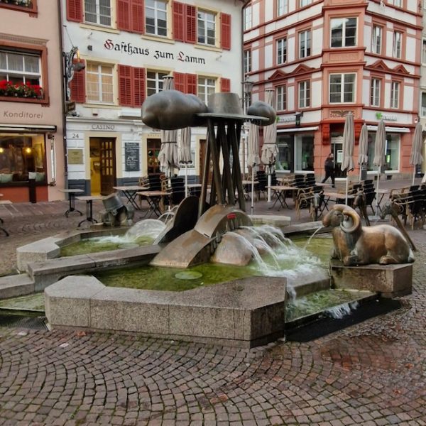 Klar, da der Hut im Ortsnamen auftaucht, muss er auch Teil eines Brunnens sein.