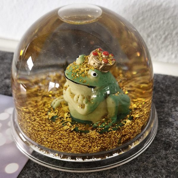 Es macht mir immer wieder gute Laune, wenn ich den Goldglitzer über dem Frosch aufschüttele.