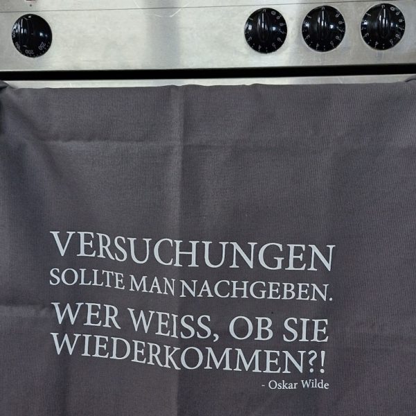 Dieses Zitat stammt von Oskar Wilde und ziert mein neues Küchenhandtuch. Auch ein Geschenk, nachträglich. Danke, Anne.